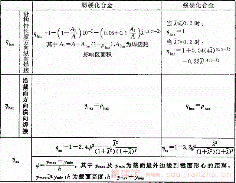 表B-1 弱硬化合金构件的轴心受压稳定系数 φ