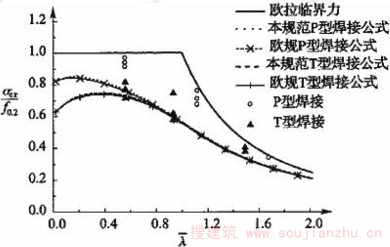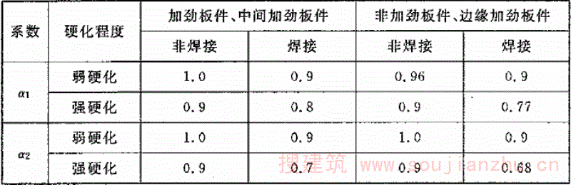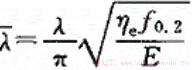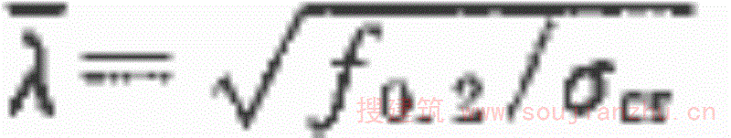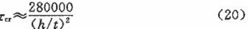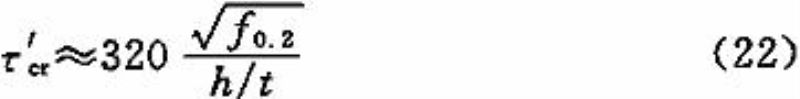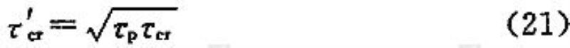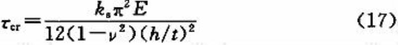 2 腹板塑性剪切屈曲应力。 根据结构稳定理论,弹塑性屈曲应力可按下式计算: