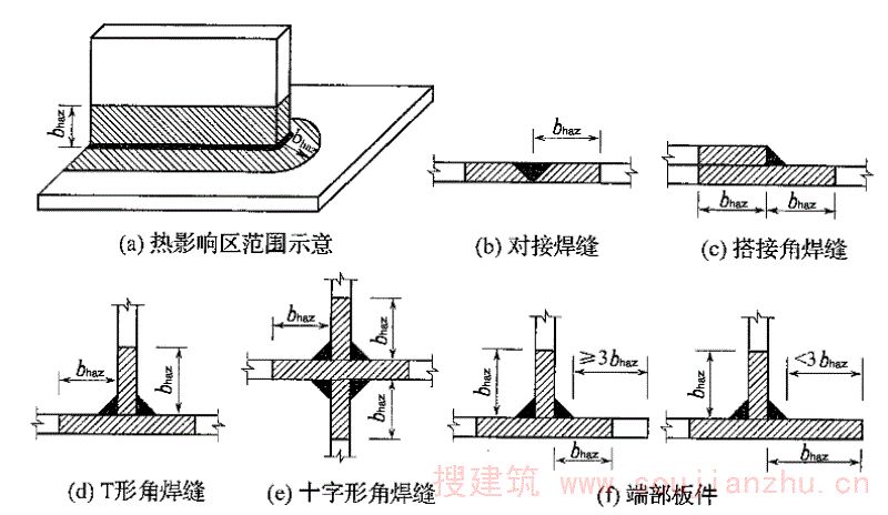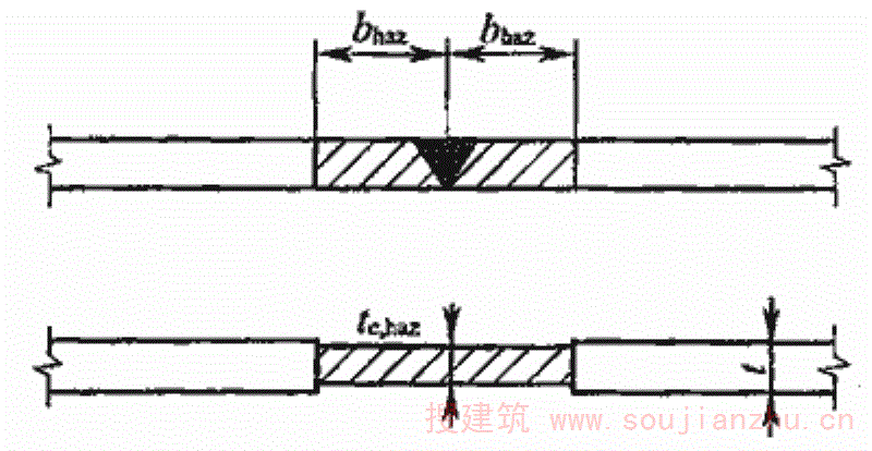 母材受焊接热影响效应作用的范围,简称HAZ。