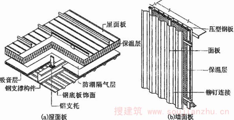 11.5.1 铝合金屋面板和墙面板的基本构造如图20。