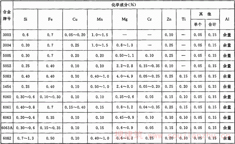 表A-3 结构用铝合金板、带材、管材、型材的化学成分
