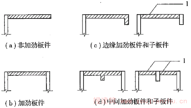 子板件是指一纵边与其他板件相连,另一纵边与中间加劲肋相连或两纵边均与中间加劲肋相连的板件。