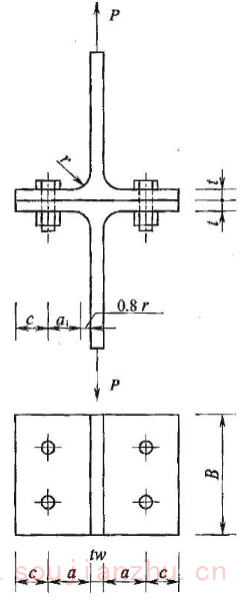 t ——T形支托等效厚度,按( t 1 + t 2 )/2取值;