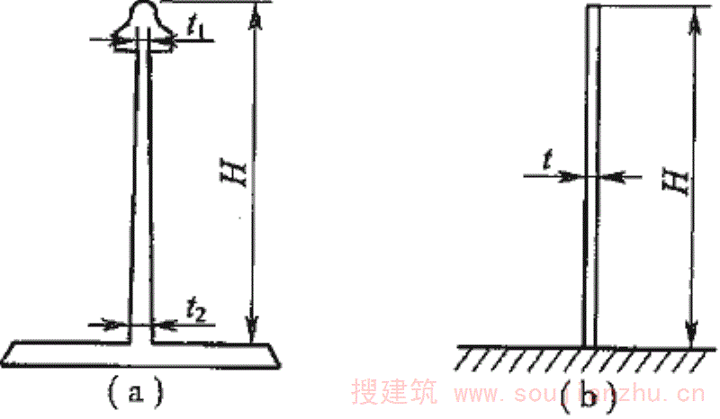 11.3.3 铝合金面板T形支托的稳定性可简化为等截面柱模型(图11.3.3b),简化模型应按下式计算: