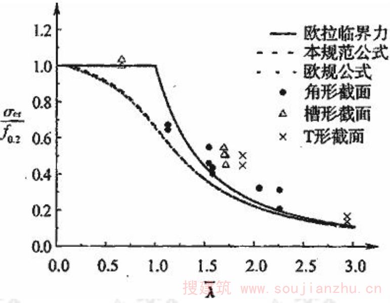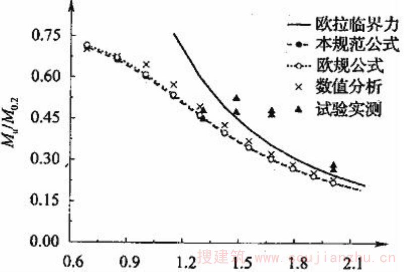 。 将式(17)代入式(21),同时取ks=5.34,并考虑抗力分项系数γR=1.2,可得: