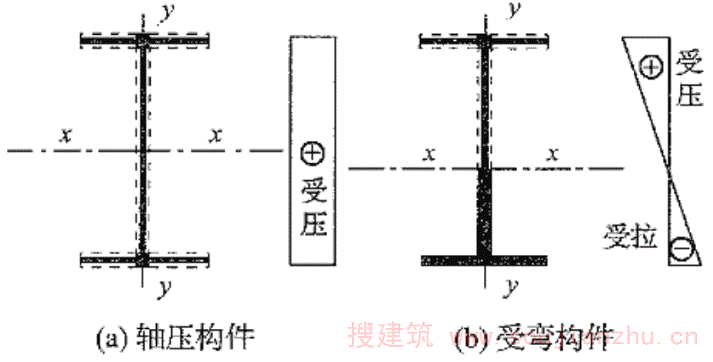 杆件或板件在轴心压力、弯矩、剪力单独或共同作用下突然发生与原受力状态不符的较大变形而失去稳定。