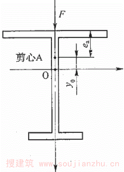 y 0 ——剪心至形心的竖向距离,当剪心到形心的指向与挠曲方向一致时取负,相反时取正;