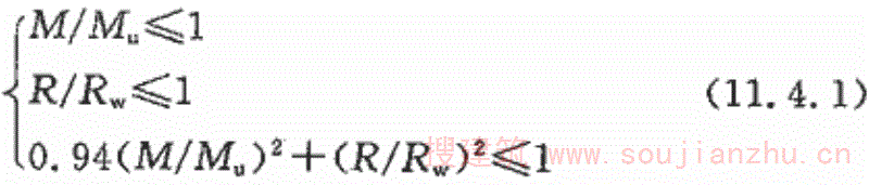 11.4.1 铝合金面板同时承受弯矩 M 和支座反力 R 的截面,应满足下列要求: