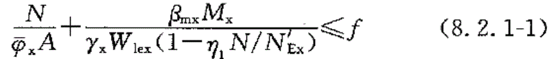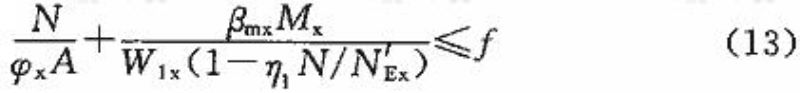 式中 M u ——截面的弯曲承载力设计值, M u = W e f ;