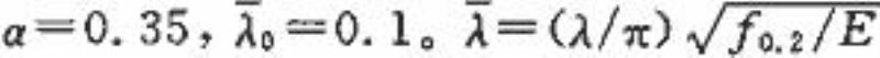 对于弱硬化合金: α =0.20, λ 0 =0.36;