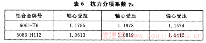 铝合金材料或连接的强度标准值除以相应抗力分项系数后的数值。