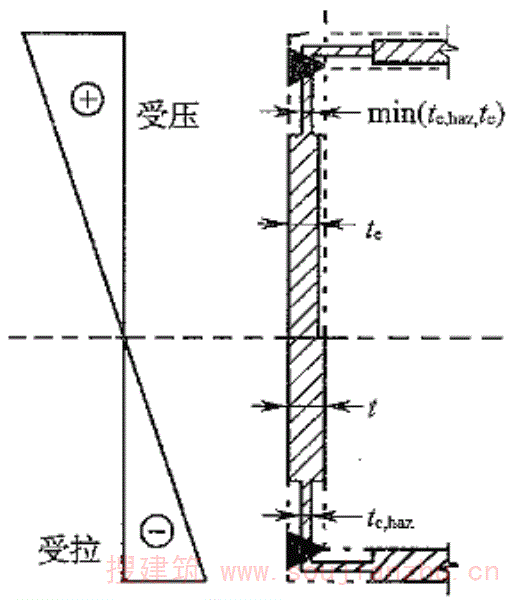 考虑受压板件屈曲后强度以及焊接热影响区效应对构件承载力进行计算时,板件的折减计算厚度。