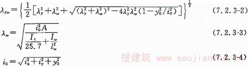 式中 I y ——绕弱轴 y 轴的毛截面惯性矩;