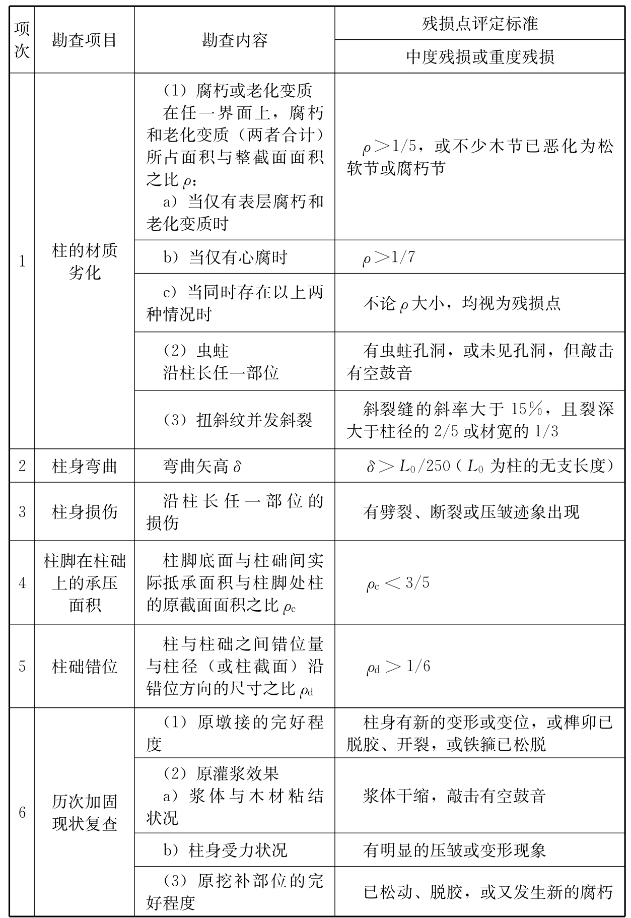 5 结构和构件的几何参数应采用现场实测值,并应计入腐朽、虫蛀、风化、腐蚀、缺陷、损伤、偏心以及施工偏差等的影响。