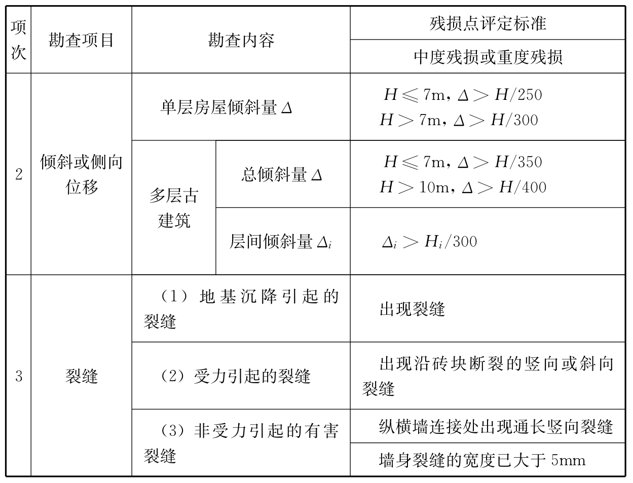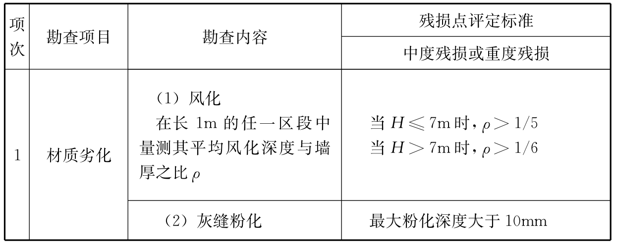 2 当无法在基础顶面处评价时,评价位置取最底层承重外墙的底部。