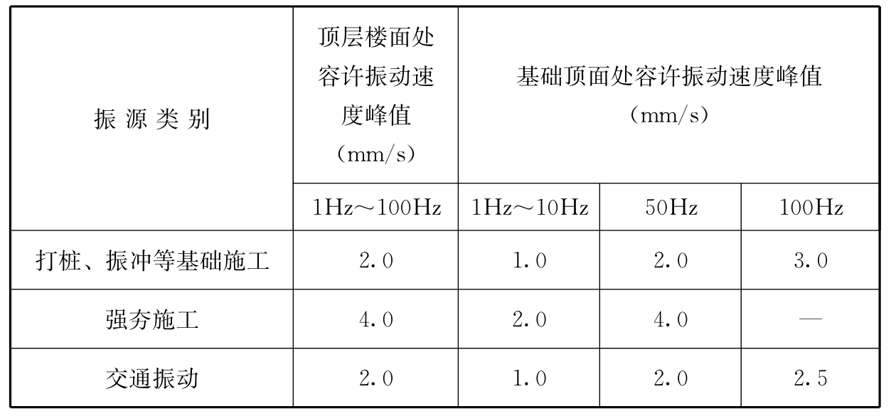 3 表列频率为主振频率;振动速度为质点振动相互垂直的三个分量的最大值。
