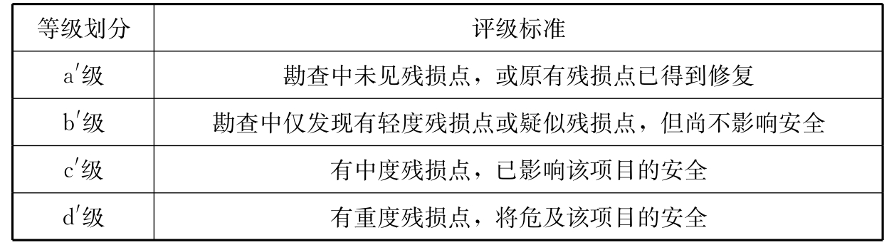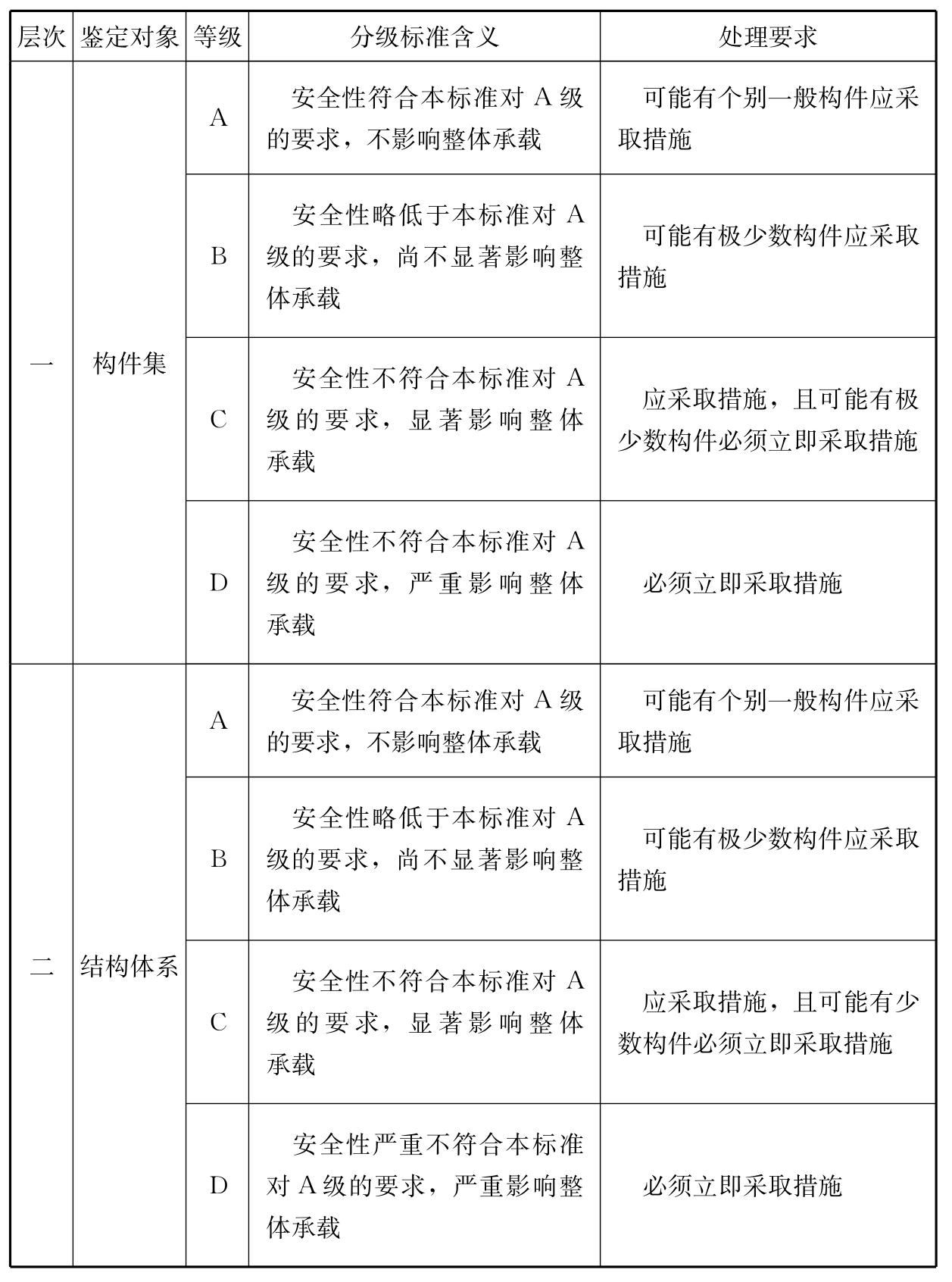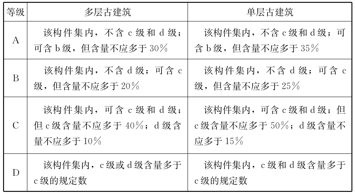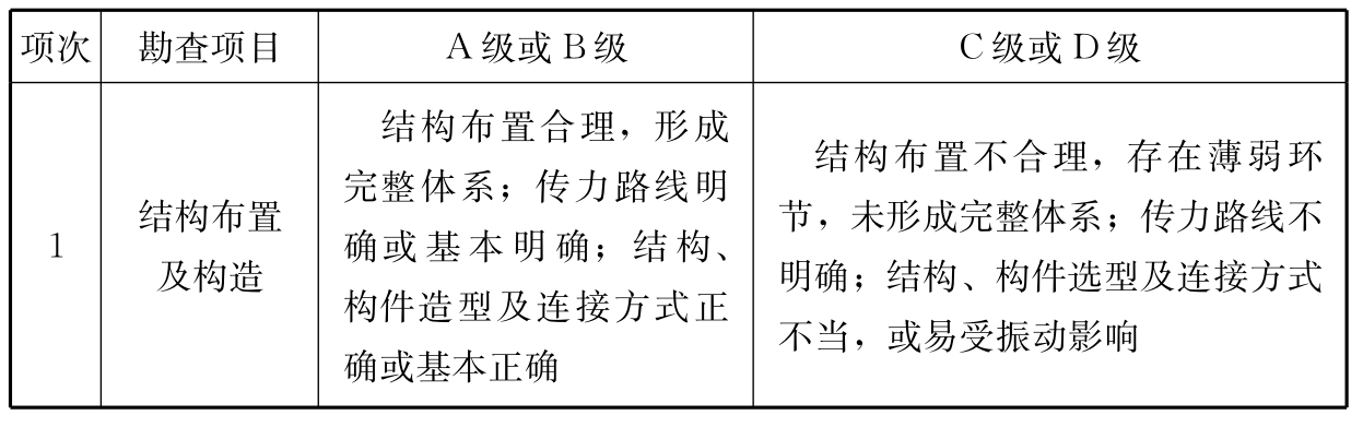 注:评定结果取A级或B级,根据结构、构件实际完好程度确定;取C级或D级,根据其实际严重程度确定。