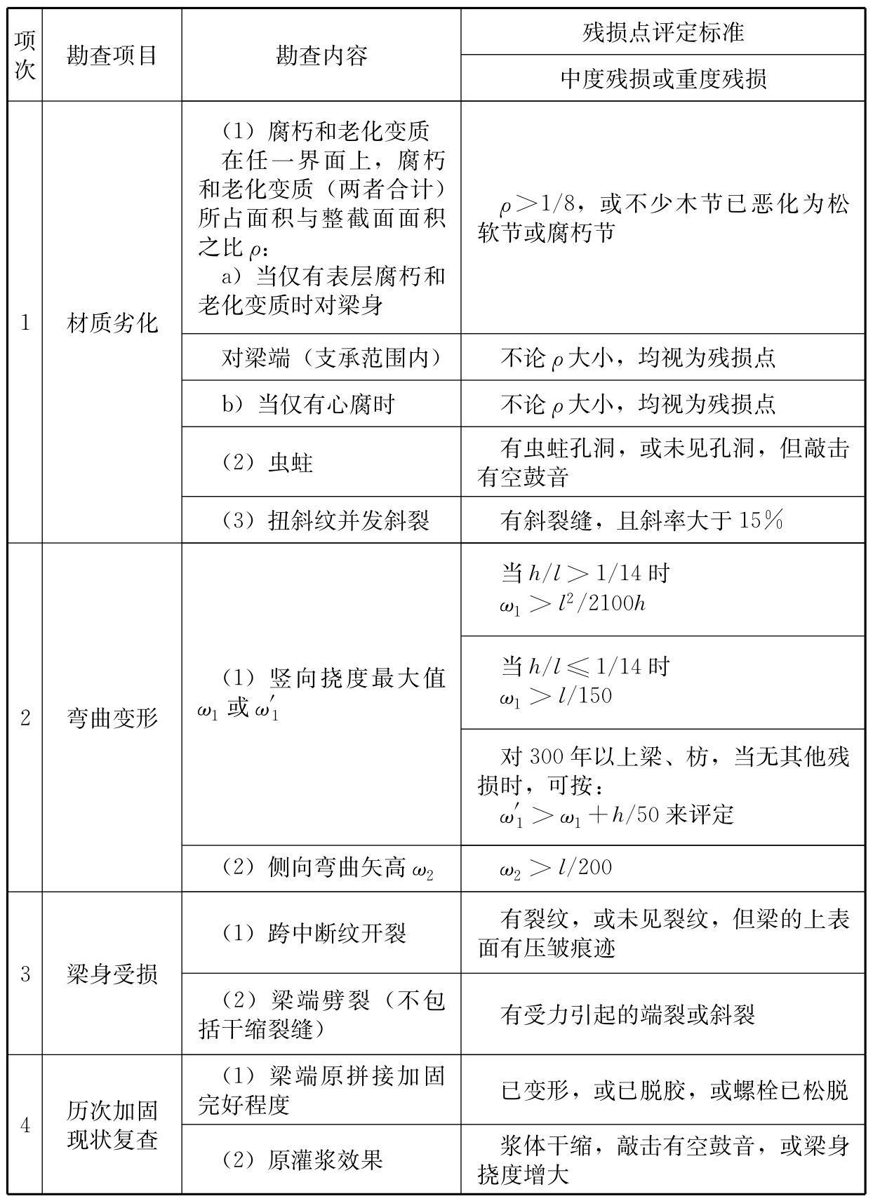 2 对外观已显著变形或木质已老化的原构件,尚应乘以本标准表F.0.2规定的考虑荷载长期作用和木质老化影响的调整系数。