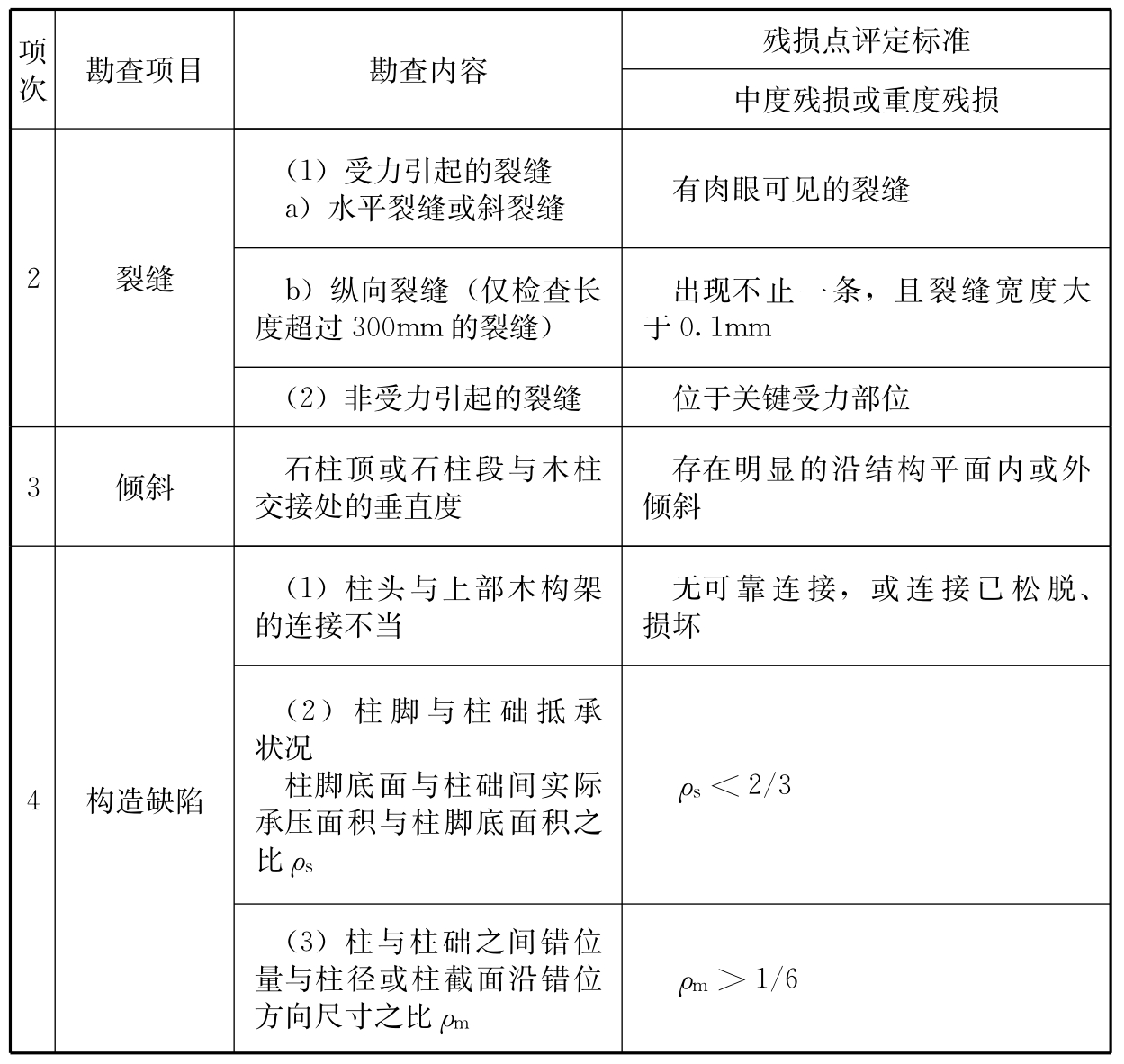 承重结构体系中某一构件、节点、连接或某一关键部位已处于不能正常受力、不能安全使用或濒临破坏的状态。根据其严重程度可分为轻度残损点、中度残损点和重度残损点。