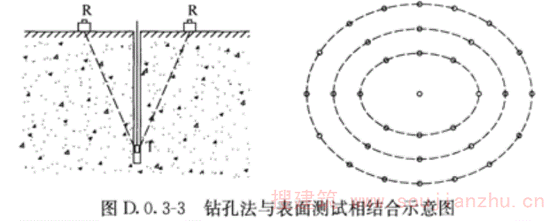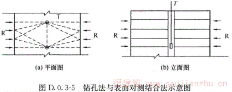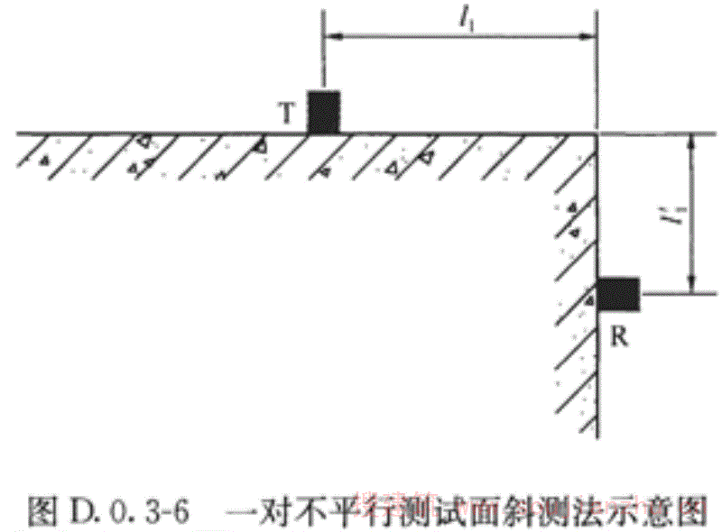 3 应将T、R换能器分别置于以裂缝为对称的两侧(图E.0.3),对应不同的