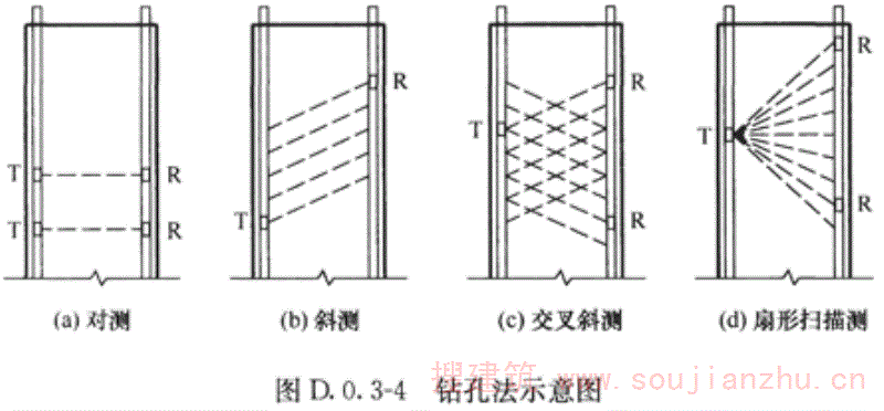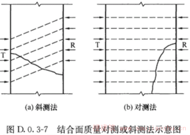 1 应将T和R换能器置于裂缝附近同一侧,以两个换能器内边缘间距