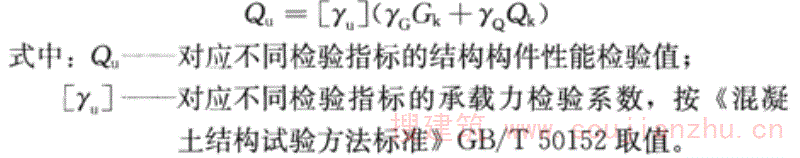 通过施加作用力以检验构件的承载力、刚度、抗裂性或裂缝宽度等参数为目的的检测。