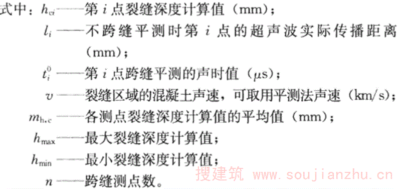 E.0.4 对应于不同测距的裂缝深度及裂缝深度的极差和裂缝深度的平均值应按下列公式计算: