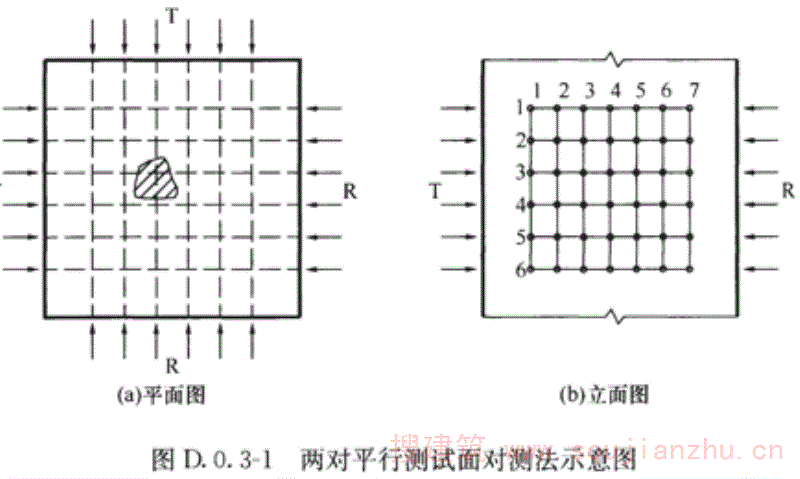 F.3.1 超声检测表面损伤层厚度时,测区的布置应符合下列规定: