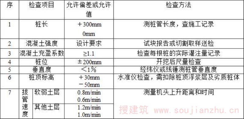 3 在拔管过程中应根据土层的实际情况二次添加混凝土,以满足桩顶混凝土标高要求;