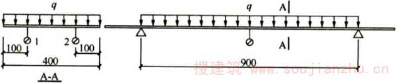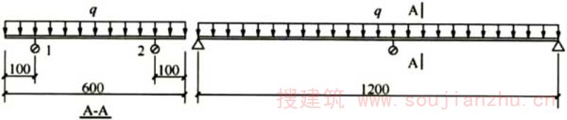 图25楼板模板均布荷载试验简图 q-均布荷载;1,2-百分表