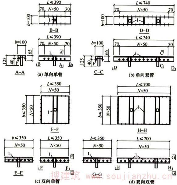 2.1.2平面模板一般由U形材和肋焊接而成,如图1、图2。 其中,面板指平面模板中与混凝土面接触的铝合金板;边框指平面模板两侧的肋;端肋指焊接于平面模板端部的肋;次肋主要用于加强面板刚度。