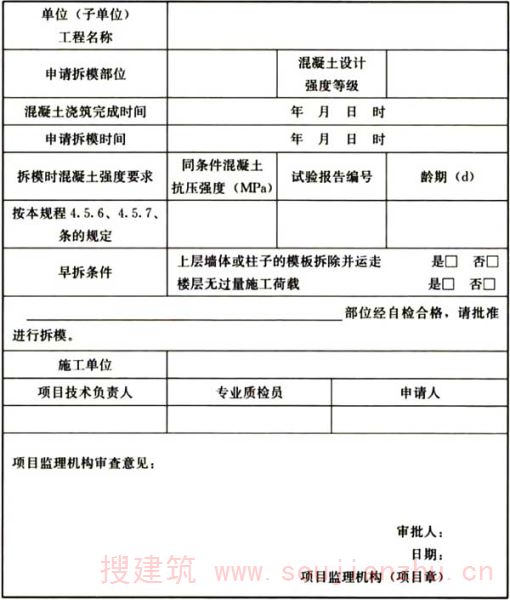 表F 铝合金模板早拆审批表