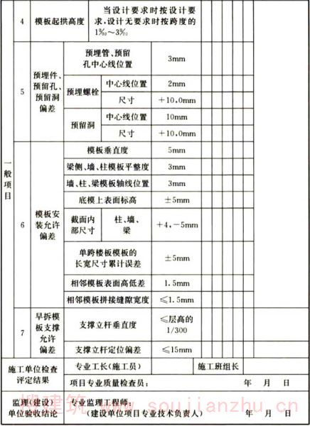 1 合格质量水平的规定。模板和配件的质量检验合格质量水平采用6.5,荷载及破坏性检测的合格质量水平采用4.0。