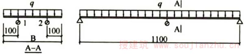 图26墙柱模板均布荷载试验简图 q-均布荷载;1,2-百分表