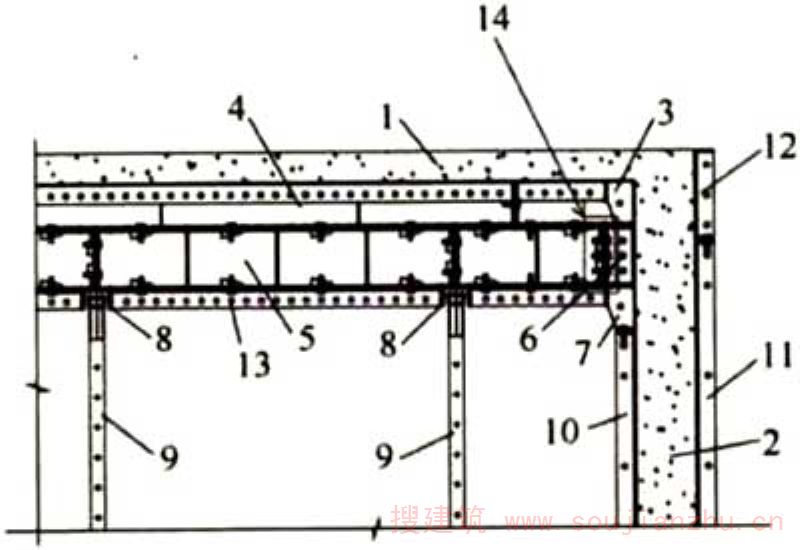 由早拆装置、可调钢支撑或其他支模架等组成的支撑系统。