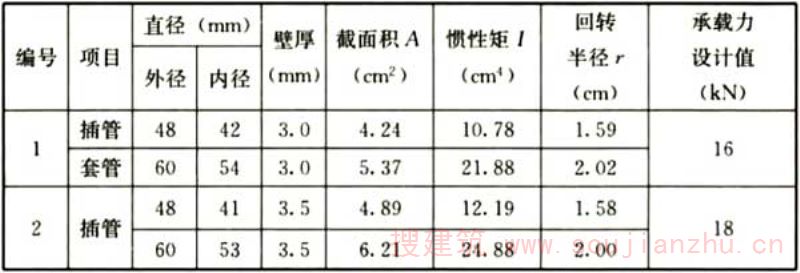 表E.0.2 可调钢支撑截面特性及承载力