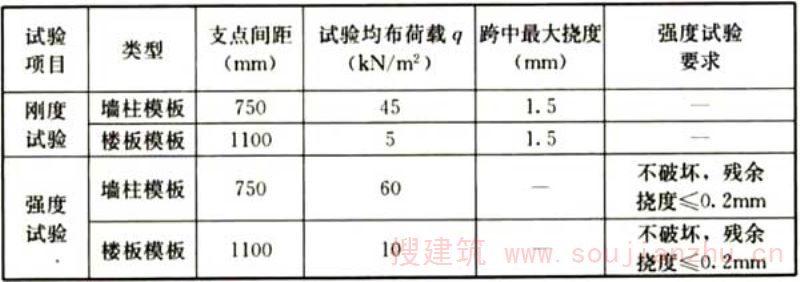D.0.4 模板试验应满足表D.0.4的规定。