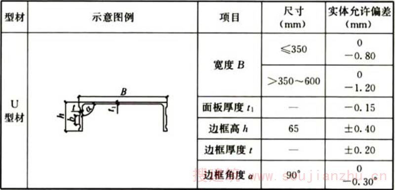 图1U形挤压型材截面示意图 1-面板;2-边框
