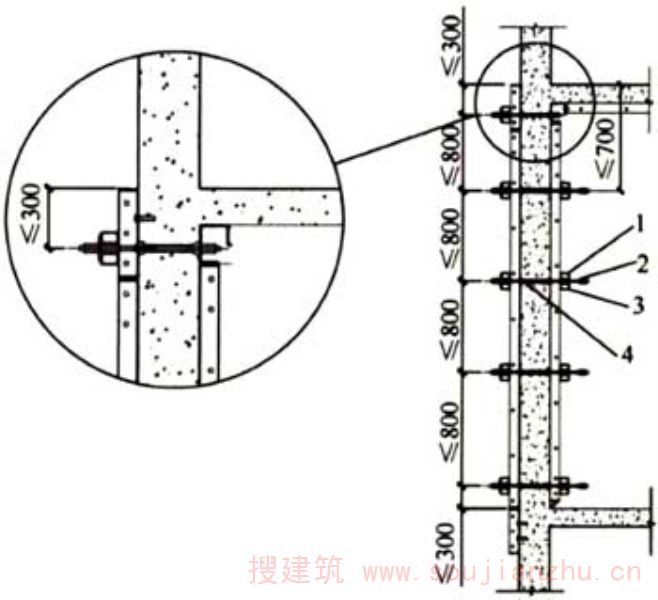 2.1.4承接模板一般通过预埋螺栓连接在结构外墙顶部,与楼板面持平或略高。本层墙柱模板拆除时,保留承接模板,用于支撑上一层的外墙、柱外侧模板或洞口墙体内侧的模板。承接模板与上层外墙柱模板一起拆除。