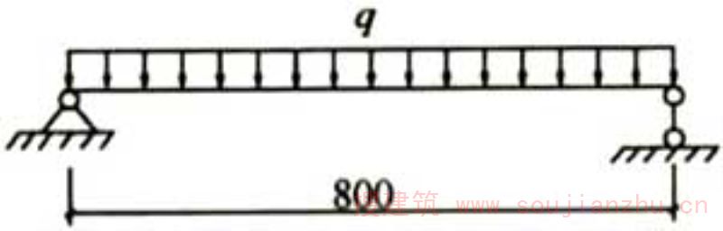 D.0.4本荷载试验采用均布荷载加载,楼板模板的荷载试验简图如图25所示,墙柱模板的荷载试验简图如图26所示。标准楼板模板长度为1100mm,支点间距取为1100mm,试验时,可以利用楼板阴角模板作为支点。当实际试验用模板的支点间距与表D.0.4中数值不同时,刚度试验时荷载不变,可按等刚度代换原则确定其跨中最大挠度;强度试验时可按等弯矩代换原则确定其试验荷载。墙柱模板的支点间距由背楞和对拉螺栓的间距(不大于800mm)确定。