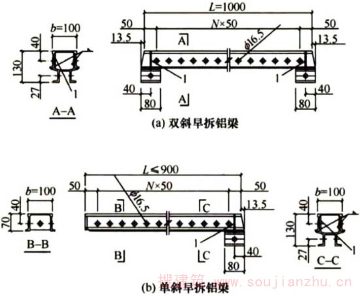 2.1.1本规程铝合金模板的边框及端肋均高65mm,宽度、长度和孔距采用模数制设计。铝合金模板由铝合金挤压型材焊接而成,配合支撑系统及配件,能组合拼装成结构各个部位的模板。