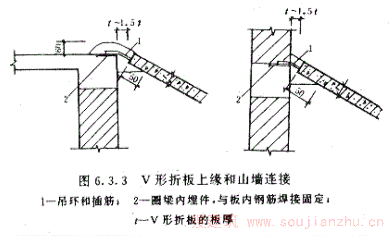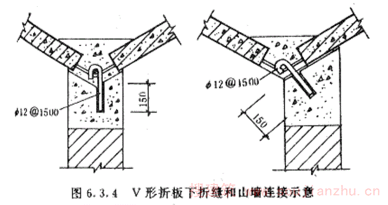 第4.1.3条 V形折板屋盖需设置埋件、吊筋、支墩等时,宜设置在V形折板的上、下折缝处,并应采取相应的防渗漏措施。