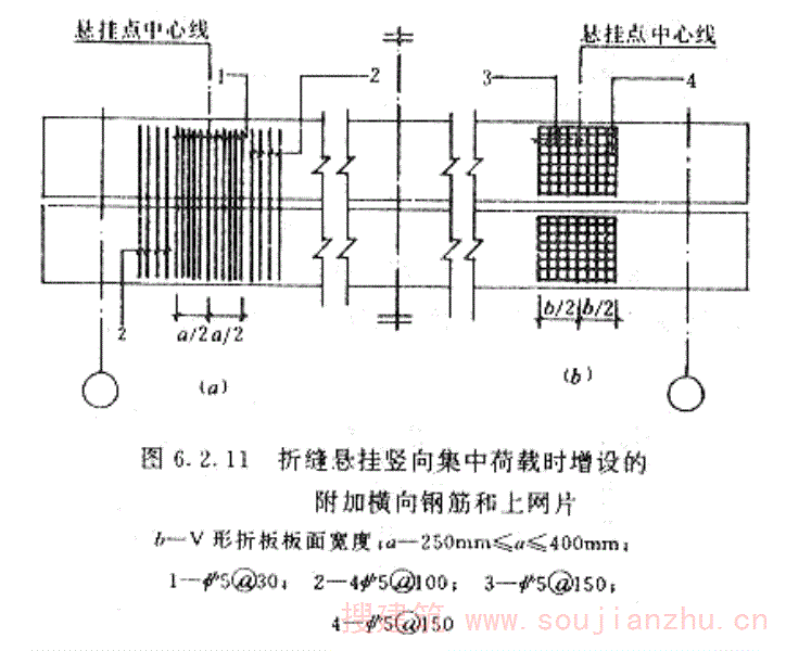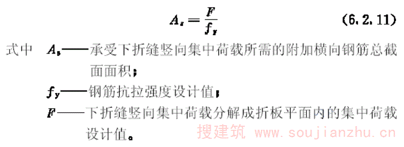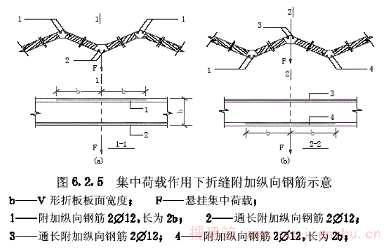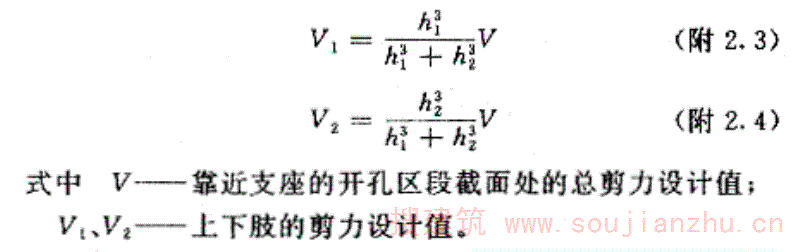 小开孔V形折板除应将整个构件当作无开孔V形折板进行计算外,尚应对开孔区段进行正截面承载力计算、抗裂验算和上下肢或附图2.1(b)开孔区段的净截面的受剪承载力计算。