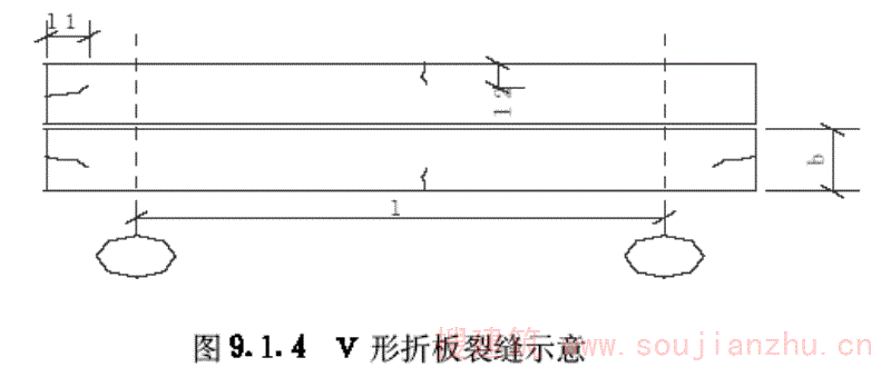 第9.1.4条 V形折板主筋带部位不允许有任何裂缝。其它部位的裂缝,在下列范围内仍可认为合格: