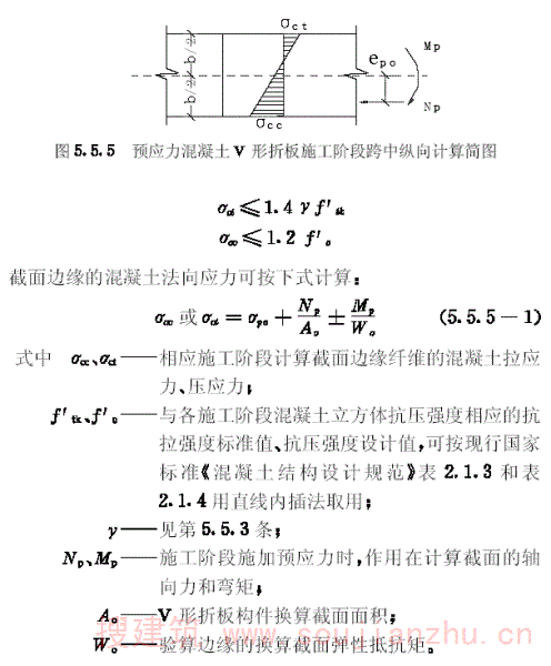 第5.1.1条 V形折板结构的内力和位移均按弹性阶段计算,截面计算按现行国家标准《混凝土结构设计规范》有关规定进行。