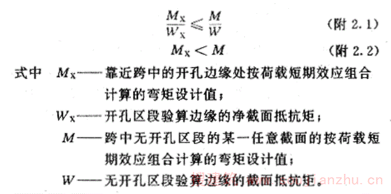 2抗裂验算。计算方法与无开孔V形折板相同,但应采用净截面的惯性矩和截面抵抗矩。当满足下式要求时,可不另进行该开孔区段的抗裂验算: