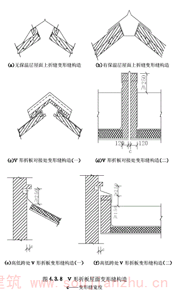 第4.3.8条 V形折板屋面变形缝构造,宜采用图4.3.8所示作法。