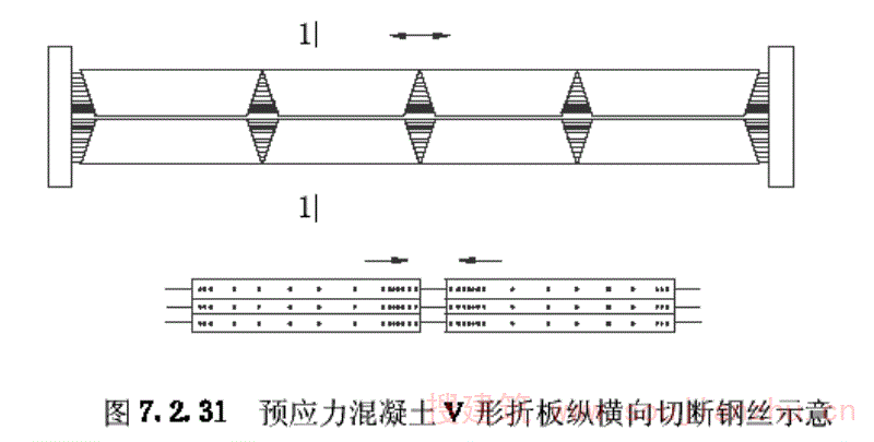 二、预应力V形折板构件进行承载力、挠度和抗裂检验。当采取加强材料和制作质量检验的措施时,可不作承载力检验。