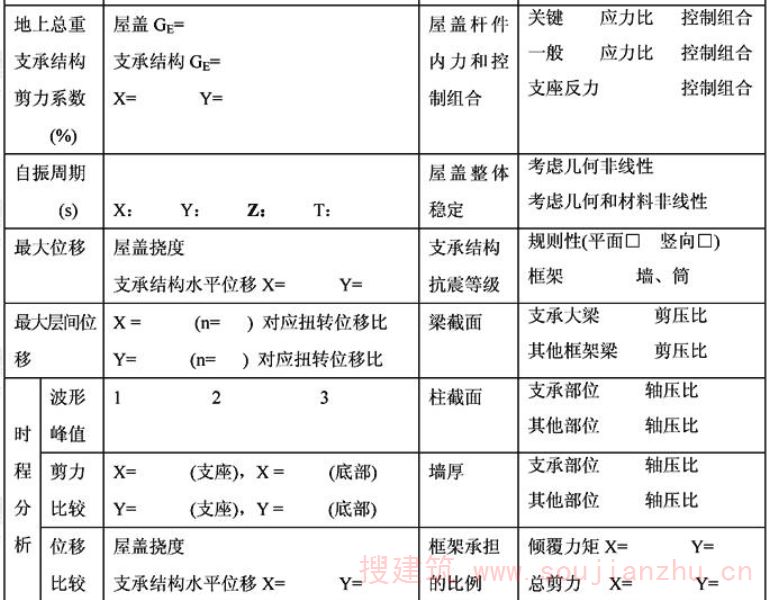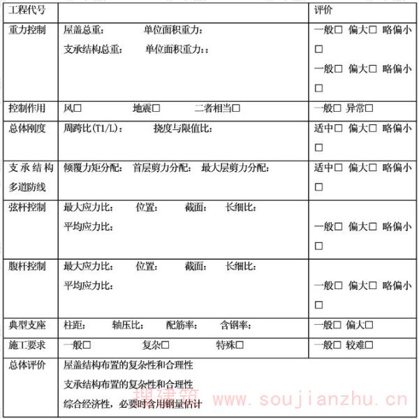表12:超限高层建筑结构设计质量控制信息表(屋盖超限)