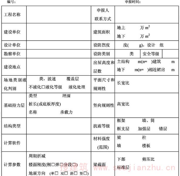 附件2超限高层建筑工程抗震设防专项审查申报表项目